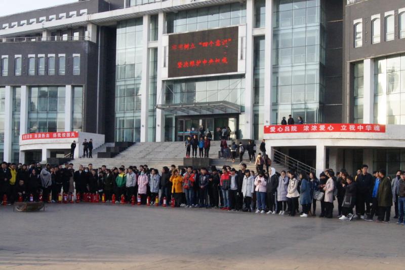为了提高大学生的消防安全意识,增强自防自救能力,我校于2017年11月17日在图书馆前开展了“如何正确使用消防器材”的活动。参加本次活动的人员为各系各班的班长、团支书和生活委员。