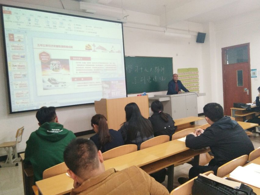 为了响应习近平总书记的号召,充分学习和贯彻党的十九大精神,我系党总支副书记赵东旭于2017年11月7日下午16:30在综B507进行了以“学习党的十九大精神”为主题的讲座。