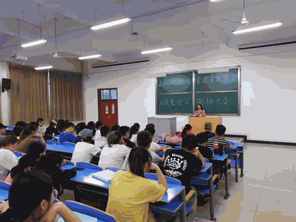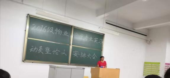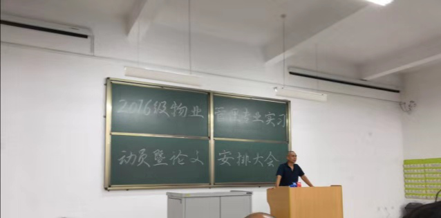 2016级物业管理专业实习动员暨论文安排大会于2019年7月12日晚7时30分在综B阶103召开 。大会由王天凤老师主持,杨小萍主任、武虎林书记、张海霞副主任等领导、物业管理教研室全体教师以及2016级物业管理全体学生参加。