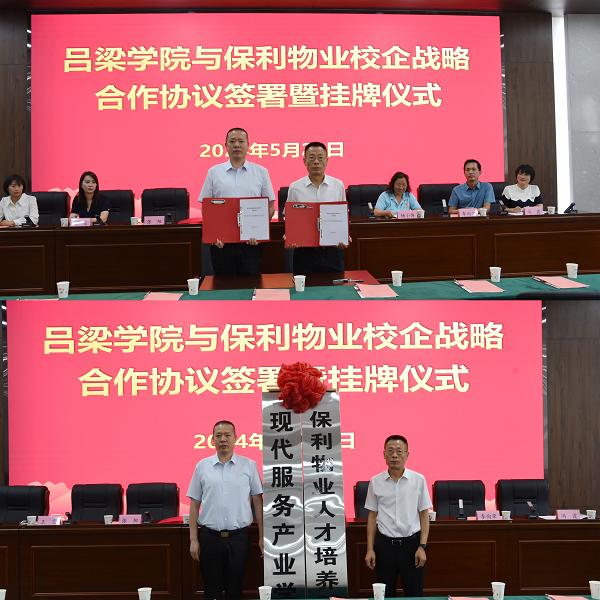 刘宝琦副院长与李旭亮总经理正式签署了校企合作战略协议,并为现代服务产业学院揭牌。这标志着必威西汉姆联与保利物业山西公司正式建立了战略合作伙伴关系,双方将在人才培养、科学研究、社会服务等多个领域展开深度合作。