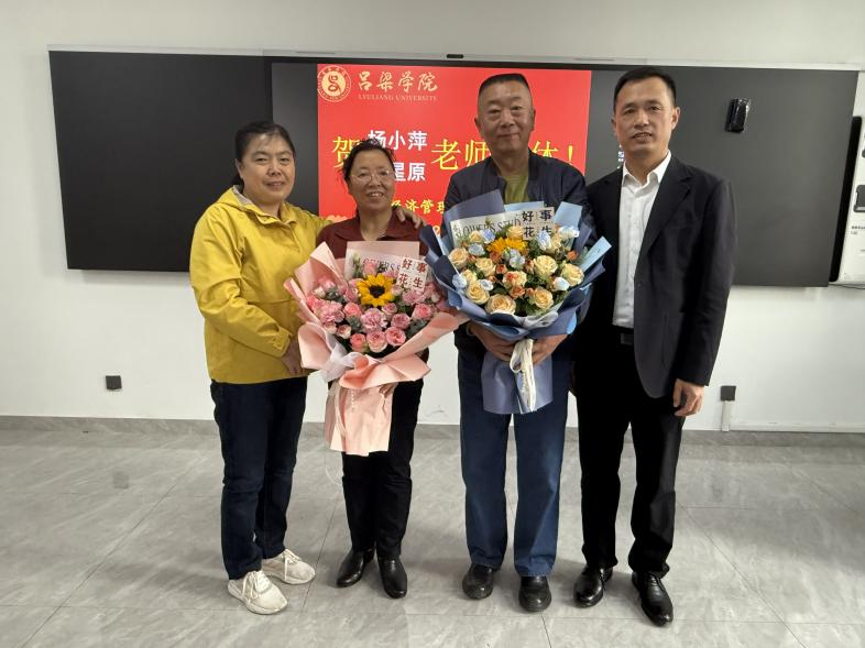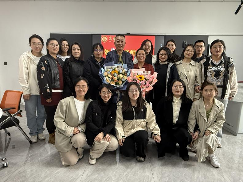 为感谢两位老师几十年的辛苦付出,党总支书记王中慧向两位退休教师献上鲜花并颁发退休纪念品。最后,全体人员与两位老师共同合影留念。