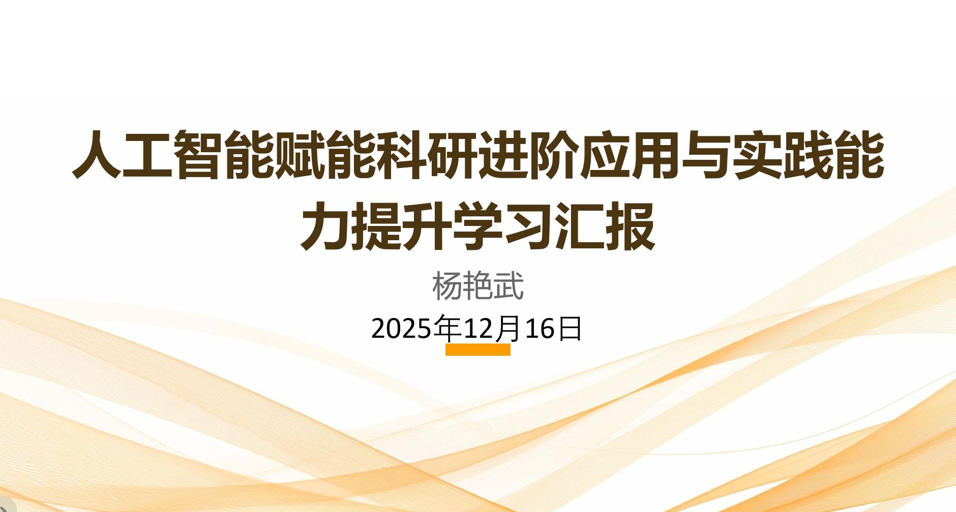 2025年12月12日-12月14日,我系杨艳武老师、冯珊珊老师,赴重庆参加了“人工智能赋能科研进阶应用与实践能力提升高级研修班”。12月16日下午,我系在弘礼楼419会议室举行了系部例会,在例会的最后,杨艳武老师进行了教师外出培训经验分享。