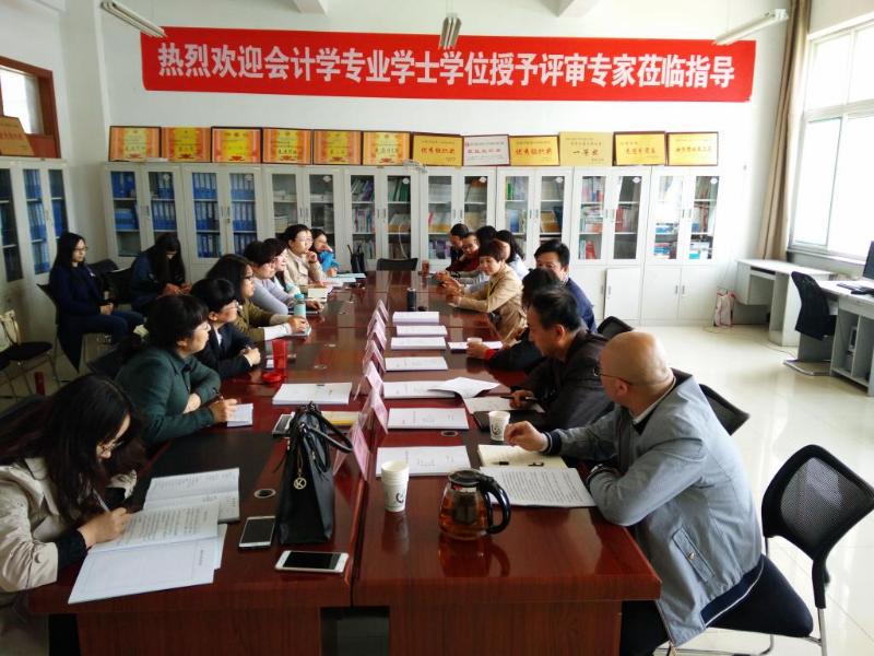 会上,系党总支书记武虎林代表全系师生向评审专家的到来表示热烈欢迎。系主任杨小萍、副主任李小玲、财务会计教研室主任张海霞老师分别就我系会计学专业发展现状、会计学专业教学科研情况、会计学专业人才培养和专业实验室建设等向评审专家做了详细汇报,并就我系教师队伍建设、教学过程及管理、实践教学、毕业论文选题等与评审专家进行了深入细致的交流研讨。赵公民教授一边听取汇报,一边认真查阅相关支撑材料,对我系会计学专业建设取得的成绩予以肯定,并就我系会计学专业未来发展提出了好的意见、建议。
