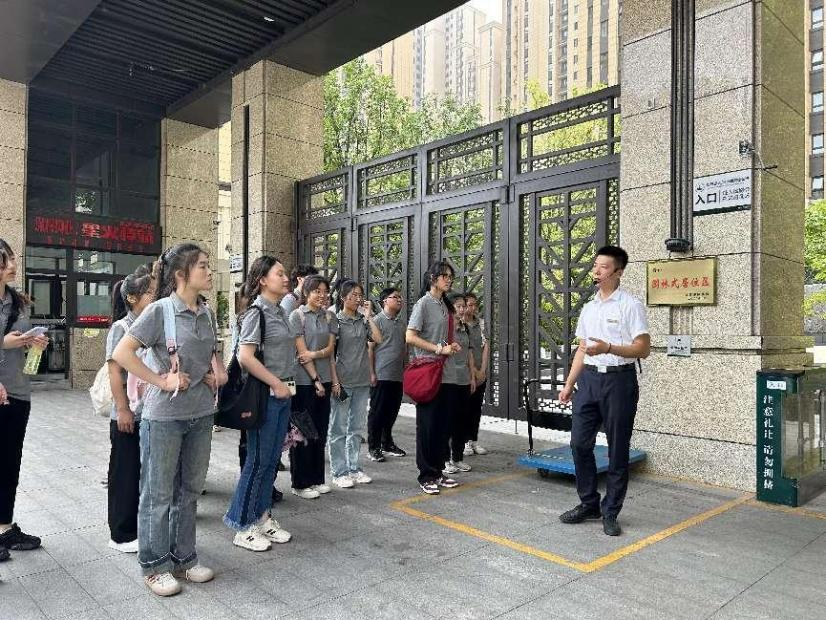 7月3日,必威西汉姆联保利物业订单班全体学员在物业管理教研室薛卫峰、王天凤、薛雅君三位老师的带领下,赴太原保利物业西湖林语小区开展现场实践教学活动。此次活动旨在通过实地参观学习,让学员们近距离观察并深入了解物业管理工作,促进理论与实践的深度融合,帮助学员们更好地适应和胜任后续实习实践工作。