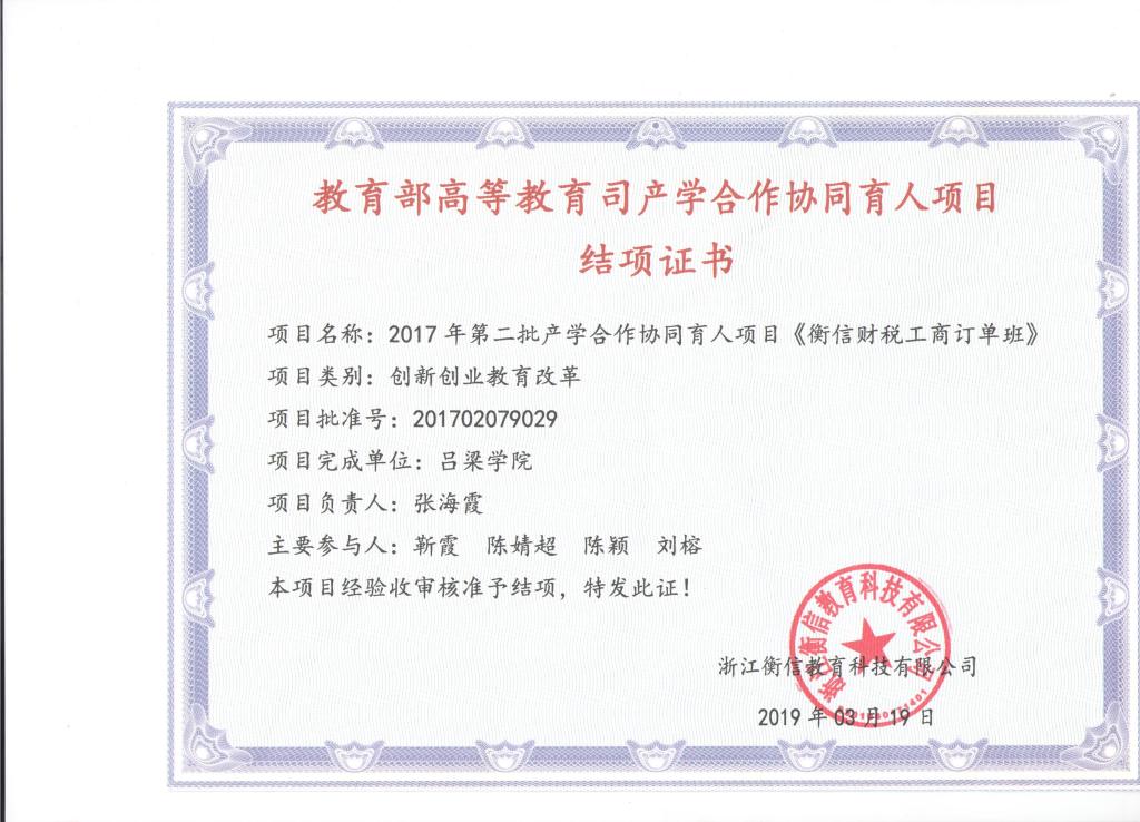 与企业开展深度合作,协同育人,创新人才培养内容,共同培养高素质的财税类人才。该项目经过了一年的检验期,于2019年3月顺利结题。