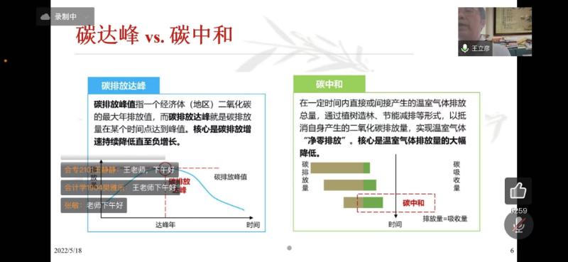 讲座中,王教授从企业管理的角度就实现双碳目标的宏观机制和微观逻辑进行了详细分析。他指出,碳排放额度的规定将倒逼企业强化或改进营运管理,而碳市场交易的形成则势必会引出资产管理的问题,进而也会引出企业管理的话题。王教授通过建材业、畜牧业、轻化工业等5个不同行业领域的企业管理案例对企业在实现零碳目标过程中的策略和行动方案进行了具体阐释。