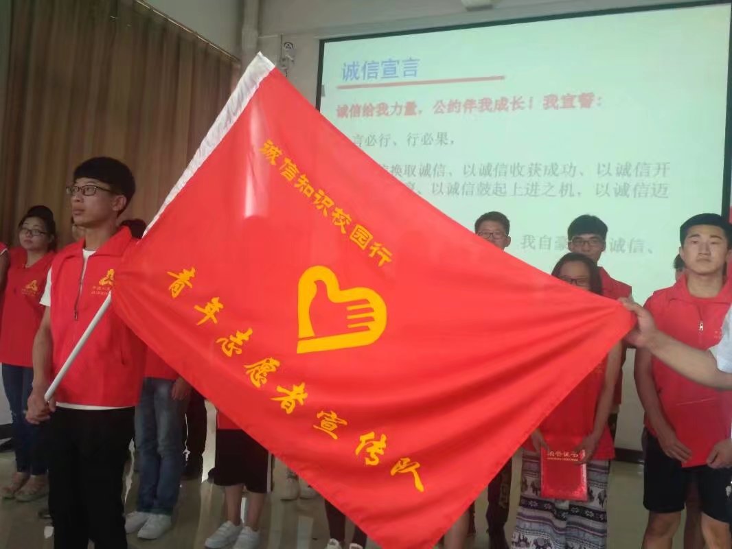 必威西汉姆联党总支书记武虎林指出,为推进诚信文化建设,我校与人民银行吕梁市中心支行在去年签署诚信文化教育基地协议的基础上,决定成立诚信文化校园志愿者宣传服务队,将有力地推动我校诚信文化建设。活动中,必威西汉姆联杨小萍主任和人民银行吕梁支行贺建伟主任共同为21名志愿者颁发了证书,并举行了志愿服务队成立授旗仪式。志愿者还进行了诚信宣言和诚信签名。人民银行工作人员还为我校大学生做了精彩的征信知识讲座,结合生动的案例为同学们解读了征信相关法律规定,让同学们树立诚信意识,警惕“校园贷”,增强了我校毕业生的还贷意识。征信志愿者和银行工作人员还在“怡丁轩”餐厅前举办了现场征信知识宣传咨询活动,为同学们发放征信知识宣传手册,认真解答同学们征信方面的疑问。