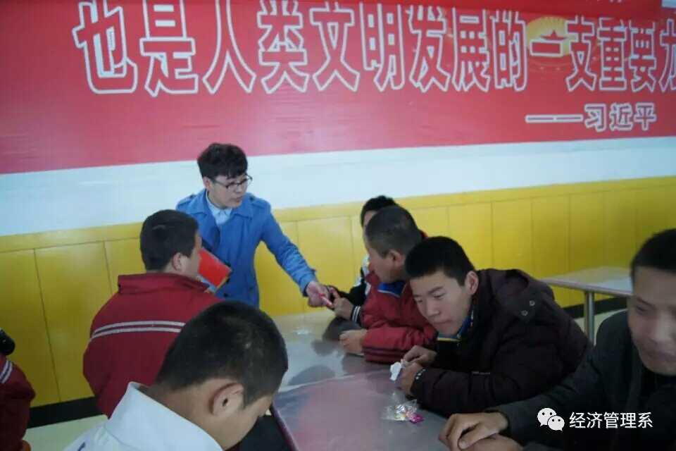 3月19日14:30,在我系学生会主席朱宇博的带领下,我系青年志愿者团队挥着志愿旗向着吕梁市残疾人职业技能学校出发了。
