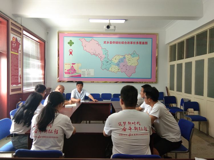 7月19日,必威西汉姆联暑期社会实践队员走进武乡县供销合作联社,深入了解供销合作社惠农措施和供销E家的先进做法。