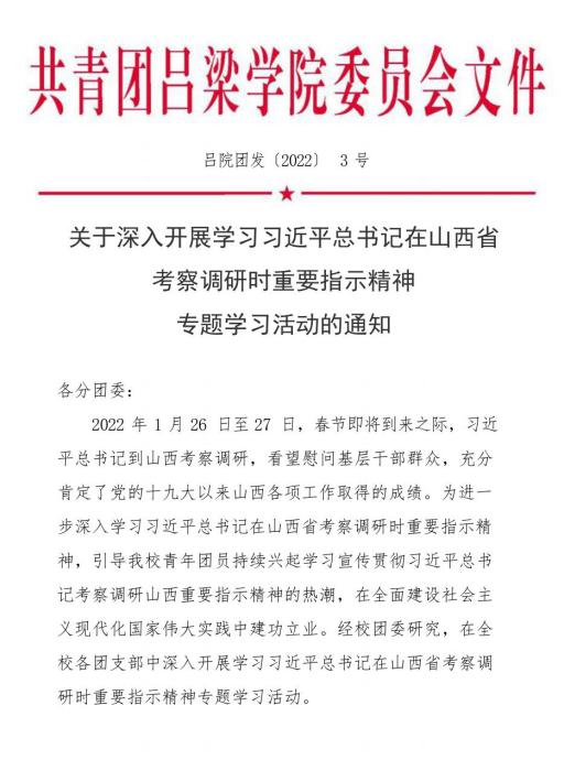 为深入学习贯彻习近平总书记在山西考察调研时重要指示精神,2022年3月上旬,必威西汉姆联分团委以各团支部为单位,组织开展了相关线上专题学习活动。
