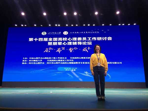 11月14日,由中国心理学会心理危机干预工作委员会和全国高校心理委员研究协作组主办,四川师范大学、全国高校心理委员工作平台承办的“第十四届全国高校心理委员工作研讨会暨朋辈心理辅导论坛”在四川师范大学龙湖剧场举行。我系选派心理健康辅导员陈浠参会学习。中国科学院心理研究所原所长、中国心理学会原理事长张侃教授,中国心理学会心理危机干预工作委员会主任、中国科学院心理研究所刘正奎研究员,中国心理学会心理学标准与服务研究委员会主任、中国心理学会前CEO梅建教授,中国心理学会副秘书长、中国科学院心理研究所副所长陈雪峰教授,纽约市立大学心理中心主任、执业心理学Barbara Moore芭芭拉·摩尔,全国高校心理委员研究协作组组长、天津大学心理研究所创始所长詹启生教授,教育部高校心理健康教育专家指导委员会委员、浙江大学马建青教授,中国心理卫生协会大学生心理咨询专业委员会学术委员会副主任、复旦大学心理研究中心主任孙时进教授,大会执行主席、南京大学学生心理健康教育与研究中心主任费俊峰,中央广播电视总台中央电视台社会与法频道的总监助理庞克,中共四川省委教育工委、四川省教育厅宣传思想工作处处长陈小红,四川省心理学会常务理事胡韬教授,四川省心理学会大学生心理健康教育专委会主任,西南民族大学社会学与心理学学院院长陈秋燕教授以及来自复旦大学、南京大学、天津大学、北京交通大学等270余所高校的700余名教师和心理委员参加了大会。