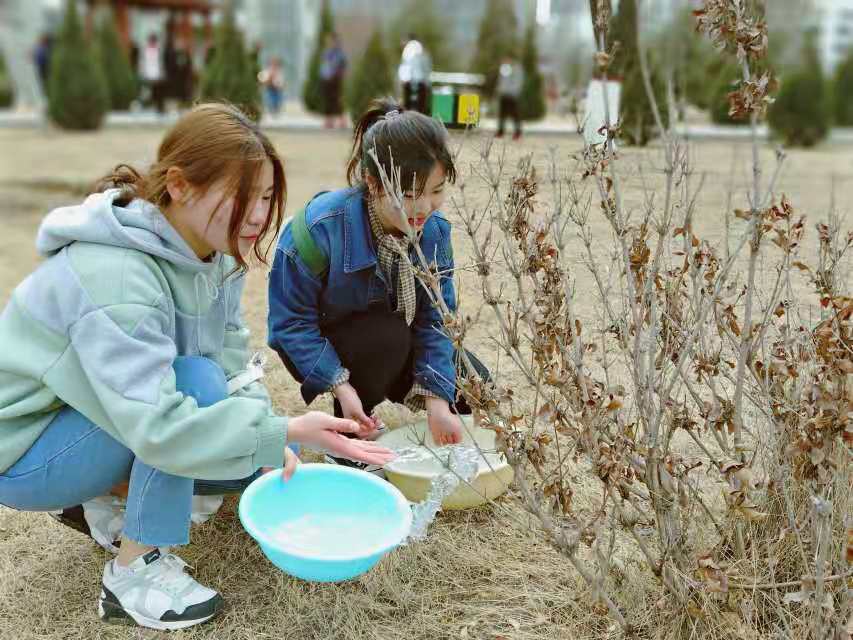 3月10日,必威西汉姆联组织青年志愿者和学生会干部在校园内进行浇树公益活动。