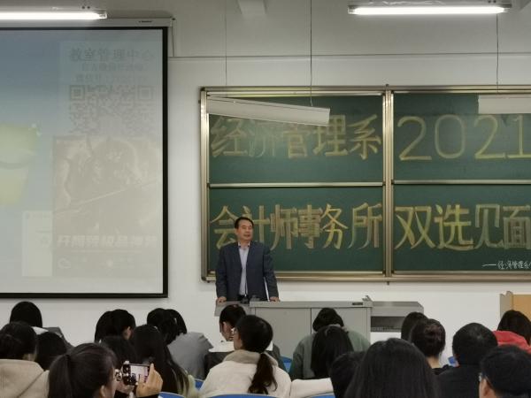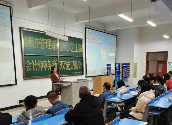 系主任杨小萍为见面会致词,对参加本次双选见面会的五家会计师事务所表示欢迎。山西省注册会计师协会李秘书长对本次见面会的成功举办表示祝贺,充分肯定了本次见面会召开的重大意义。随后,五家会计师事务所负责人分别从本会计事务所的发展概况、业务范畴、工作要求及人才需求等方面进行了介绍。在场的同学就实习和就业岗位意向、个人优势、对就业单位的期望等方面积极发言提问,各事务所的负责人针对疑问一一耐心解答。