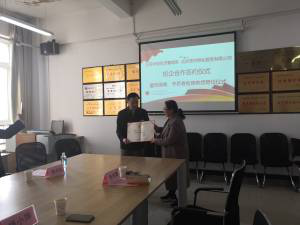 签约仪式上,为杨建峰董事长、李思春总经理颁发了客座教授聘任书。双方代表共同签订了共建就业实习基地协议书。