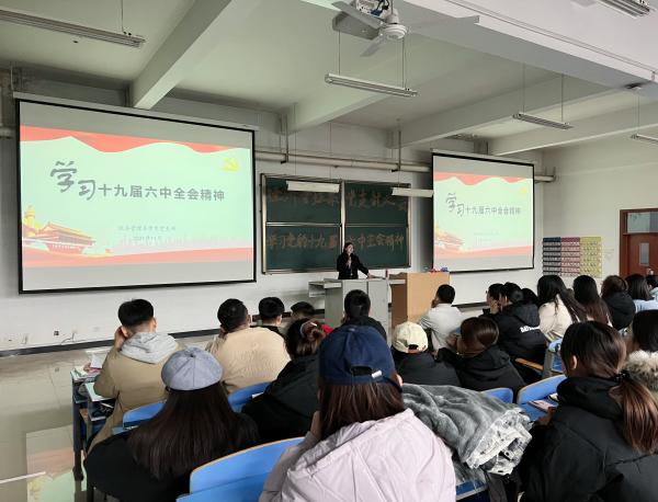 陈浠老师首先从十九届六中全会召开时间、地点、大会议程、会议通过的决议等方面介绍了此次大会的召开情况。随后,围绕“是什么、为什么、怎么做”三个方面对大会精神进行了深入阐述:从三个“需要”着手解读了为何要总结党的百年奋斗的重大成就和历史经验;总结回顾了四个历史时期分别取得的重大成就,有何历史意义,增强了同学们的自豪感和使命感;最后,号召大家在新的征程上要全面把握十条宝贵历史经验,以史为鉴、开创未来。