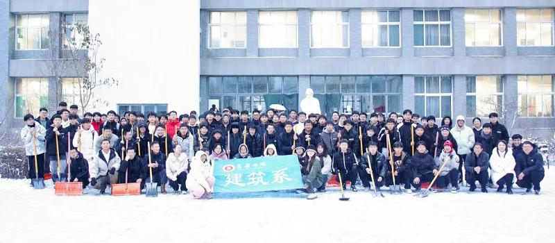 四个党总支的师生党员冒着风雪,不畏严寒,我拿扫帚,你拿铁锹,铲的铲、扫的扫、推的推,大家团结协作,齐心协力,干得热火朝天,忙碌的身影在白雪皑皑的校园中构成了一道亮丽的风景线。